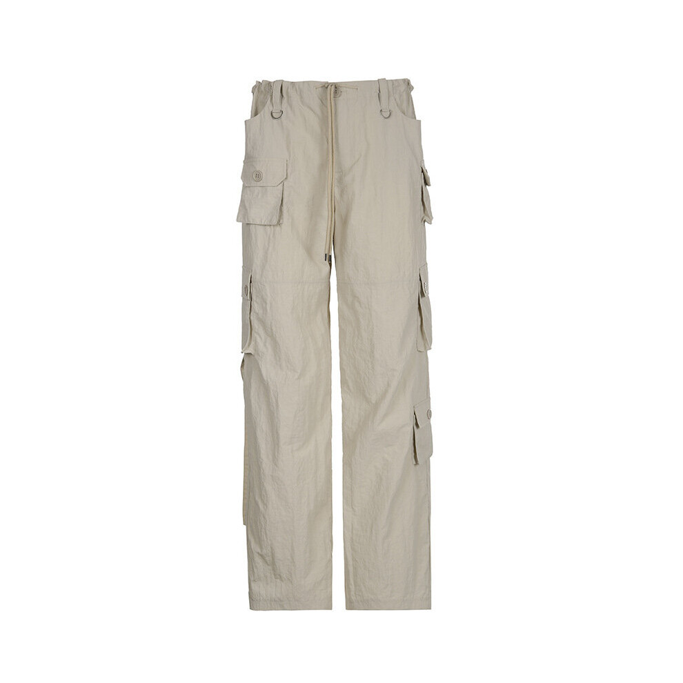 (Creamy White Beige-M) Cargo Pants Women Summer Thin Loose Pocket Straight Pants High Street Trousers Women Y2k Clothes