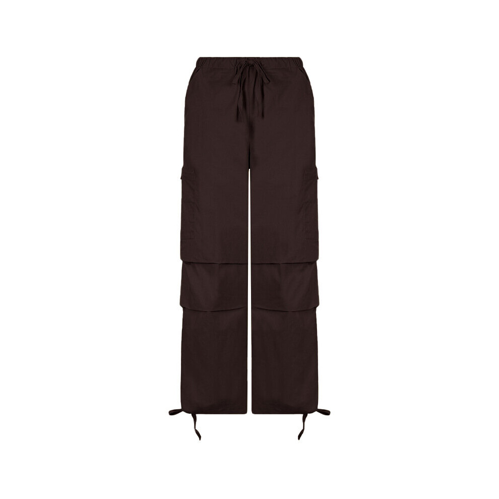 (1 Beige-L) Drawstring Y2K Retro Beige Cargo Pants Women Vintage Streetwear 90s Pockets Female Wide Leg Pantalones Loose Trousers