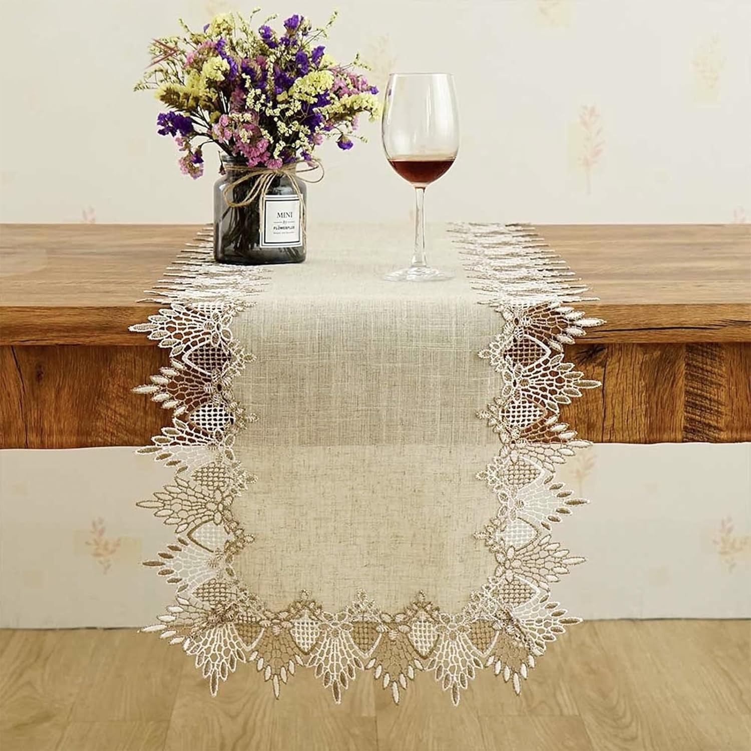 Lace Table Runner, 1 Piece Polyester Table Runner Beige Lace Coffee Table Runne