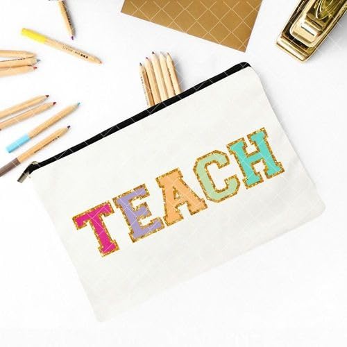 Beige Colour Teacher Flower Print School Stationery Supplies Storage Bags Wash Pouch Cosmetic Bags Teacher Gift Pencil Case Travel Makeup Bag