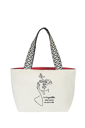 hello-bags. Premium canvas bag for women. With external zip and zipped pocket inside. Includes a red, premium canvas lining. Gift presentation. Colour: Black/Ecru. 19.68 x 11.81 in.