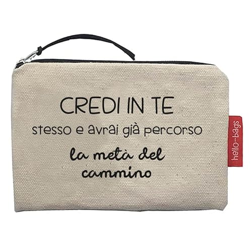 Hello-Bags. Wallet/wallet/card holder. Outer: 100% cotton with zip and inner lining. includes Kraft gift envelope. Model: storage. Colour: ecru/black. 14 x 10 cm., ecru, Contemporary