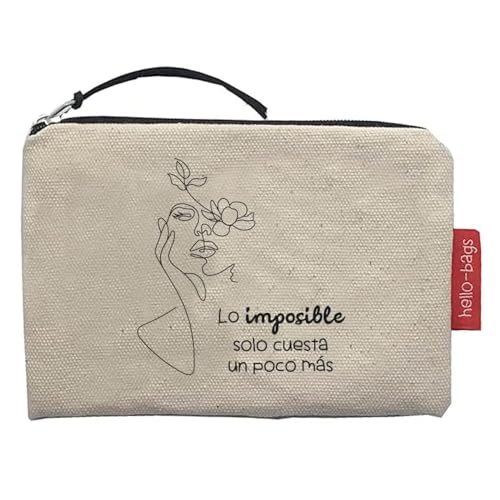 Hello-Bags. Wallet/Small Bag. Exterior: 100% Cotton. Includes Zip and Lining. Packed in a Kraft Gift Envelope. Model: LOIMPOSIBLE. Colour: Ecru/Black. 14 x 10 cm., Ecru, Contemporary