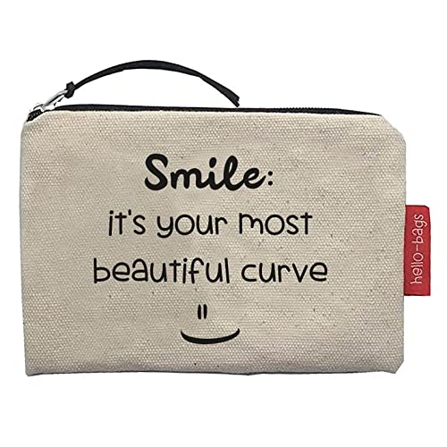 Hello-Bags. Wallet/Wallet/Card Holder Outer : 100% Cotton with Zip and Inner Lining. Includes Kraft Gift Envelope. Model: Smile. Colour: Ecru/Black. 14 x 10 cm., Ecru, Contemporary