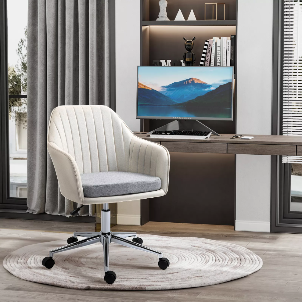 Ergonomic Linen Swivel Office Chair - Adjustable Beige Desk Chair