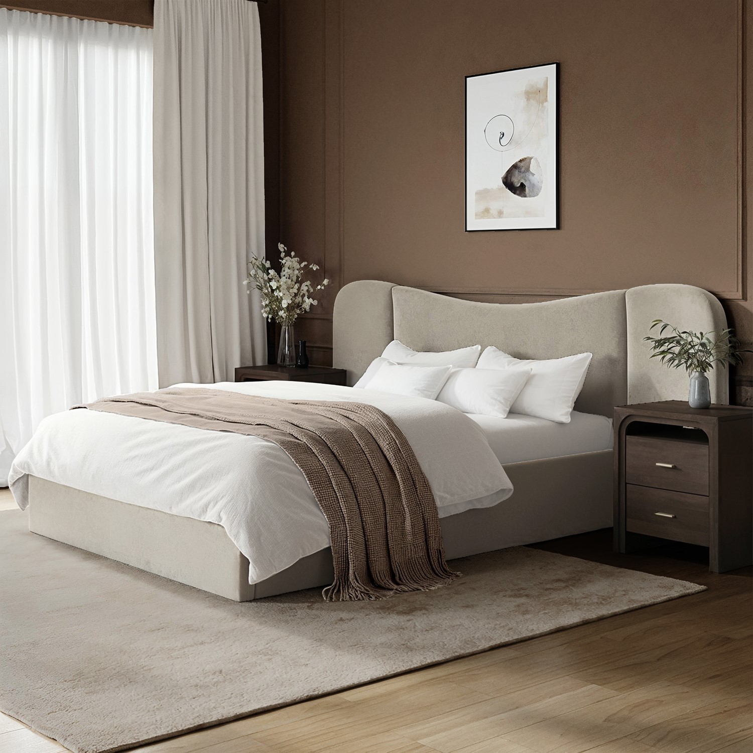 Beige double bed