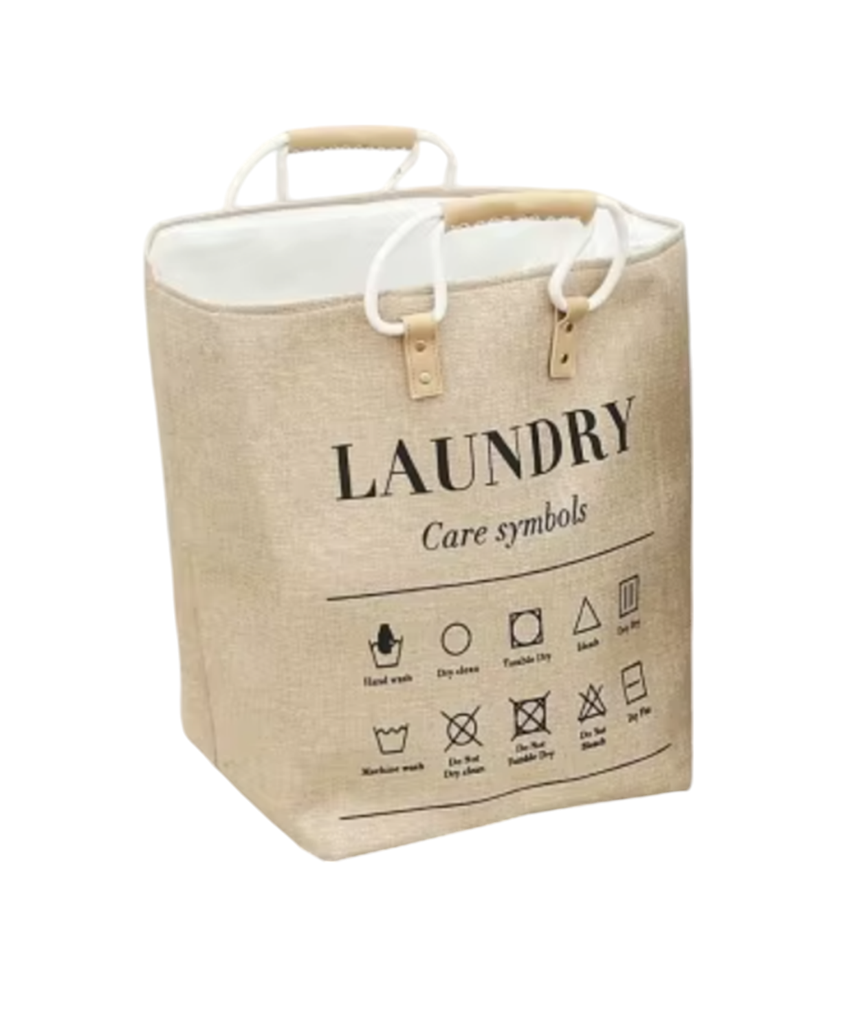 Beige Foldable Laundry Basket, Collapsible Laundry Hamper, Portable Handle