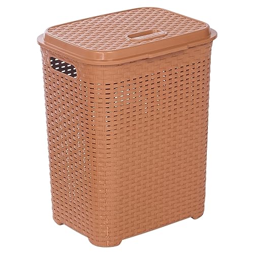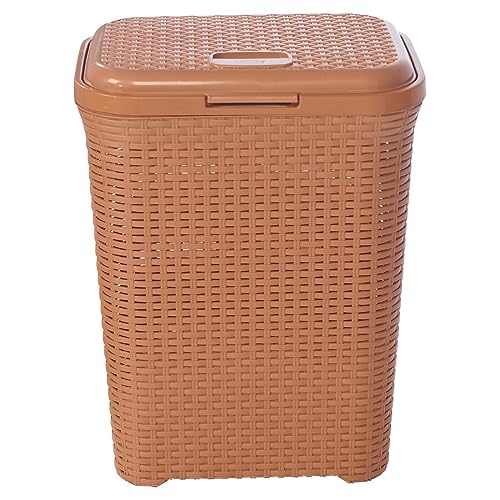 URBNLIVING 55L Plastic Rattan Dirty Laundry Clothes Washing Bin Basket Storage Organiser (Beige)