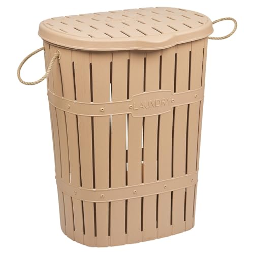 URBNLIVING 65L Bamboo Look Clothes Storage Laundry Washing Basket Hamper Rope Handles & Lid (Beige)