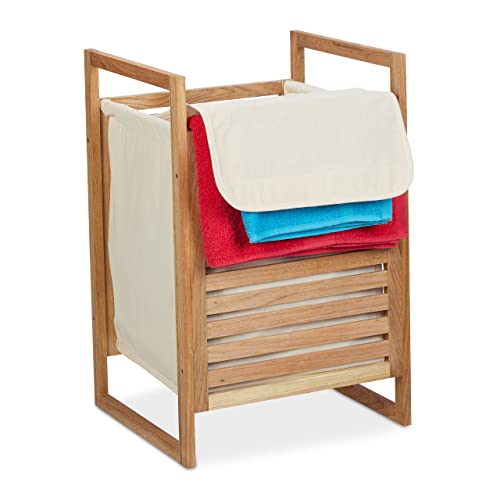 Relaxdays Bathroom Basket Shelf, Bamboo, Laundry Sorter 2 Compartments, HWD: 85 x 44 x 33 cm, Storage, Natural/Beige