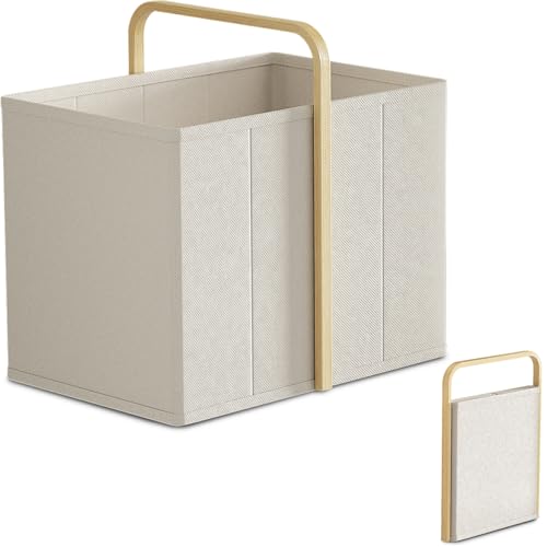 EPIGEIST Large Foldable Stair Organizer Basket for Dirty Clothes and Beige Felt Storage Tote with Comfortable Handle Space Saving Utility Bin for Household Sundries and Laundry