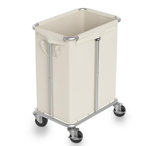 STORAGE MANIAC Commercial Laundry Hamper with Heavy Duty Steel Frame, 160 L Industrial Laundry Basket Cart with Wheels for Hotel, Home, Laundry Room, 17.72''L x 17.72''W x 30.91''H, Medium Beige