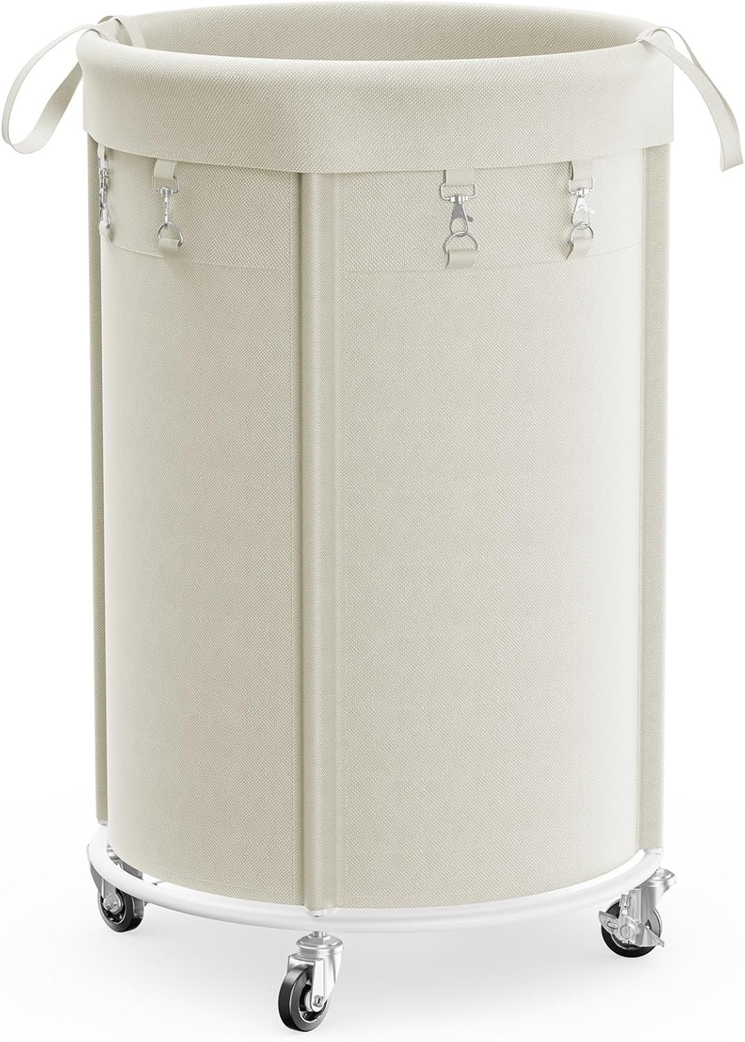 150L Laundry Basket with Wheels, Large Rolling Hamper, Round Beige