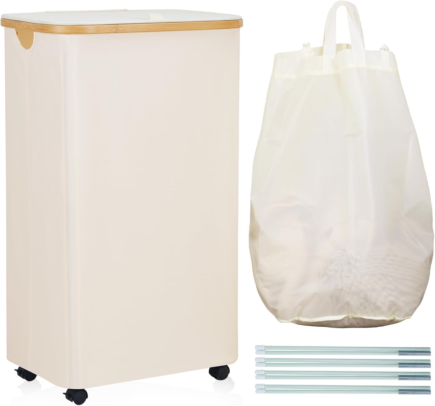 Hodonas Laundry Basket with Wheels, Rolling Laundry Hamper 170L Large Dirty Clothes Hamper Cart with Metal Frame and Removeable Bag, Hampers for Bedroom, Bathroom, and Laundry Room Organization, Beige