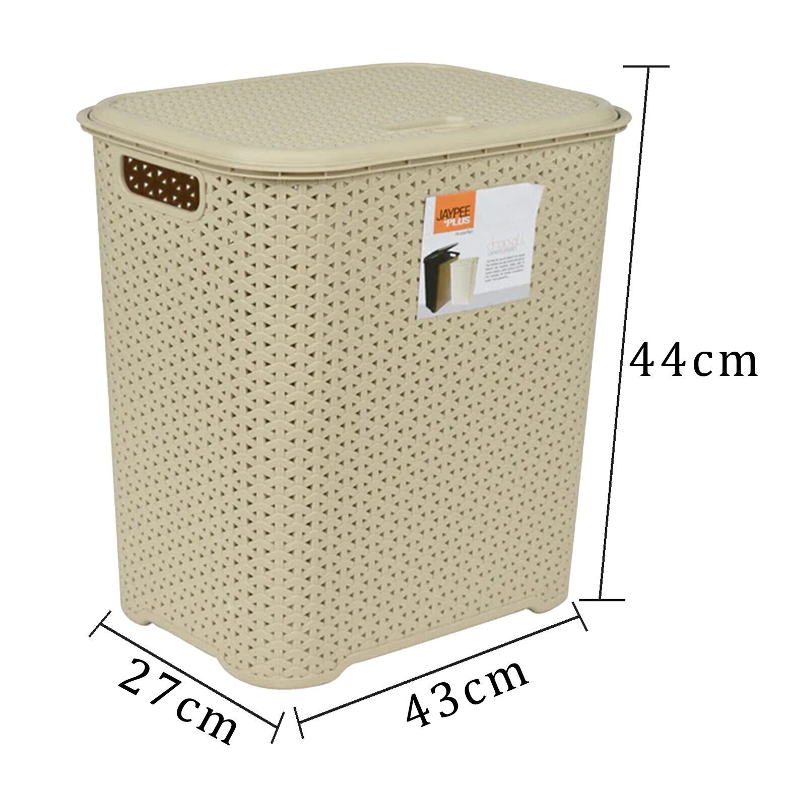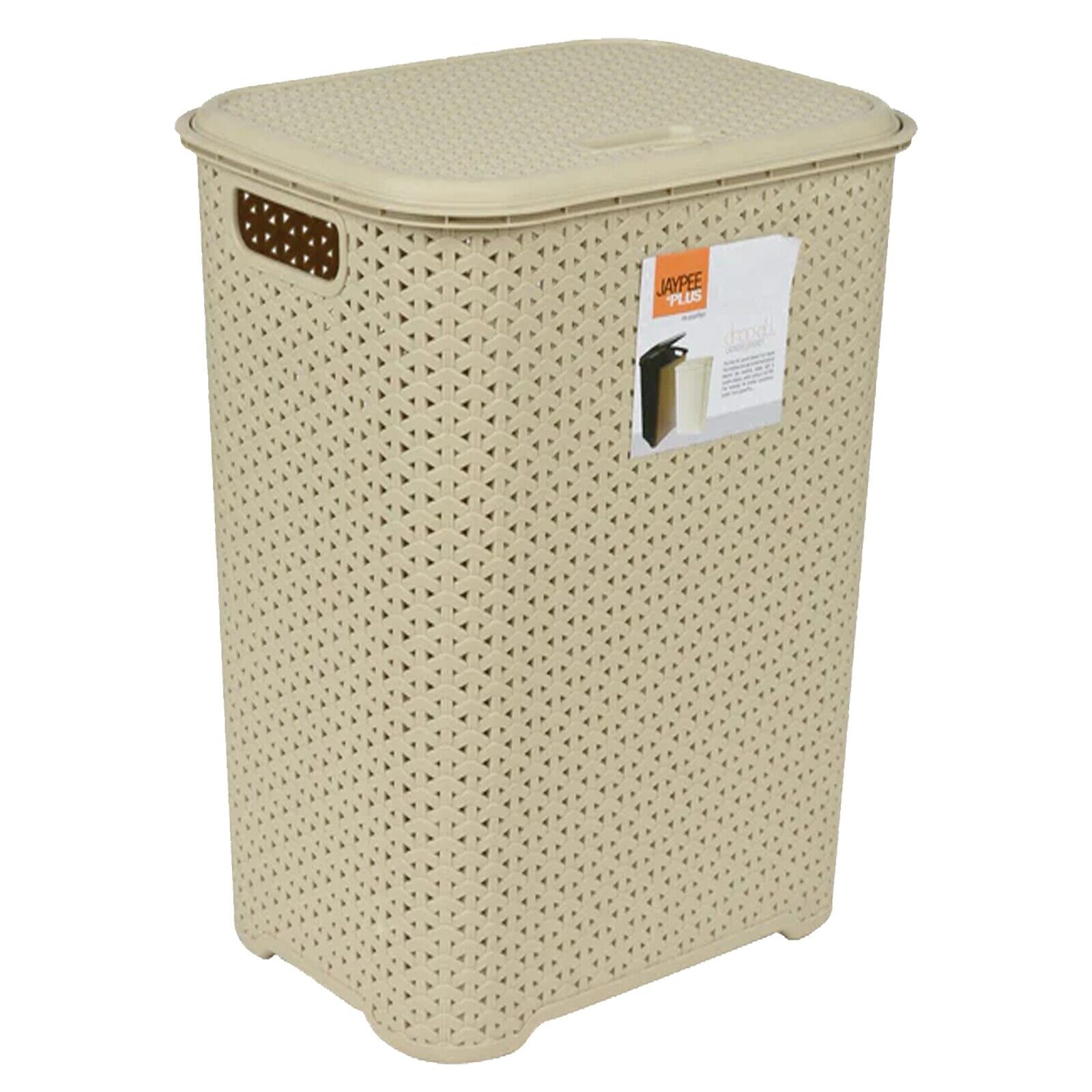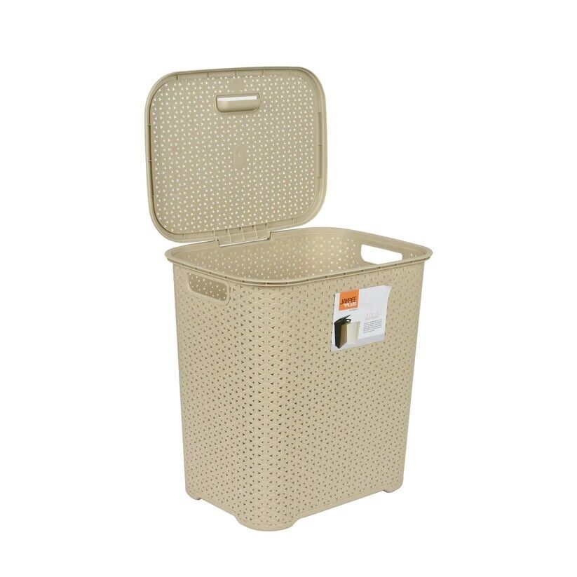 Drop All 45L Small Plastic Laundry Basket With Lid Beige Washing Dirty Clothes