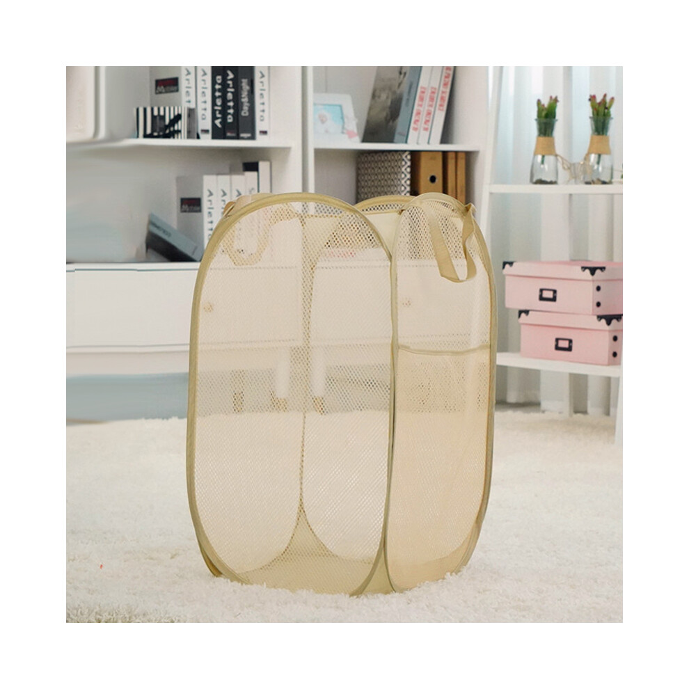 (Beige) Foldable Mesh Laundry Basket - Large Capacity
