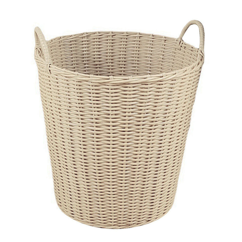 1Pc Beige Plastic Laundry Basket Portable Clothes Holder with Handles