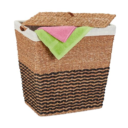 Relaxdays Basket, with Lid, Cotton Laundry Bin, 50L, HWD: Approx. 50x50x40 cm, Storage, Seagrass, Natural/Beige, 50 x 50 x 40 cm