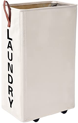 DOKEHOM 25-Inches Slim Laundry Basket on Wheels, Plus 25, Beige/M