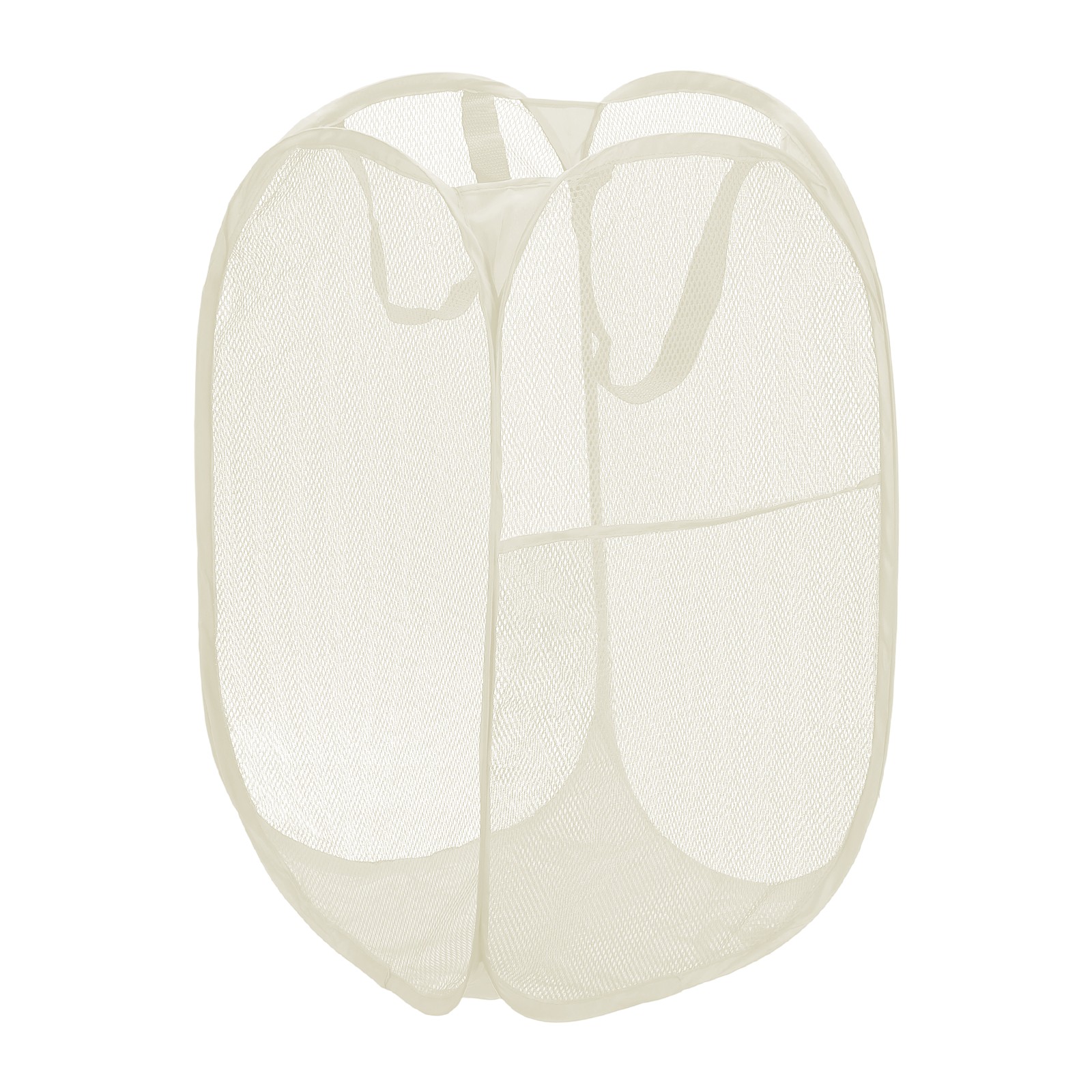 Mesh Laundry Basket Collapsible Laundry Hamper with Handles Side Pocket, Beige