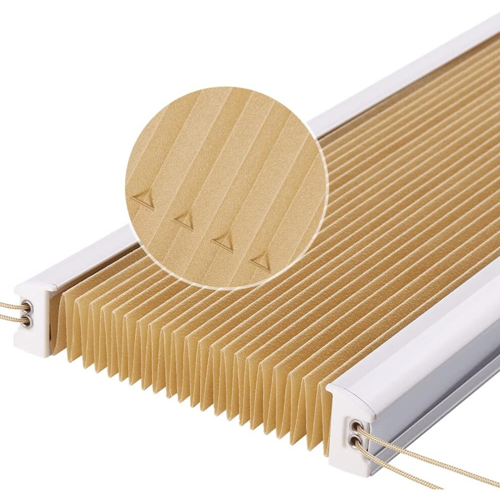 No-Drill Pleated Window Blind - Easy-Fit Adjustable Privacy Sun Shade, Semi-Transparent Light Filtering Fabric, Beige, 105 x 130 cm