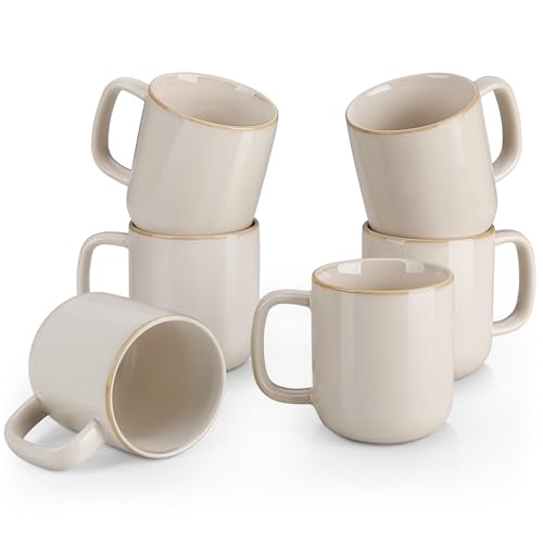 vancasso Playa Coffee Mugs Set of 6, 16 oz/480 ml Stoneware Tea Cups with Handle, for Cocoa Milk/Latte/Cappuccino, Drinkware Gift Set, Microwave & Dishwasher Safe, Beige