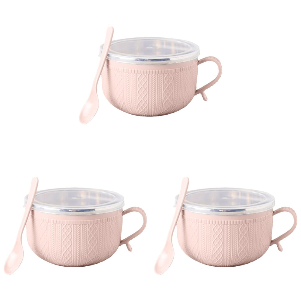 3-Pack 25oz Mug Meals with Lids, Stainless Steel Double-Layer Heat-Resistant Bowls (Beige), Compatible with Microwave & Dishwasher