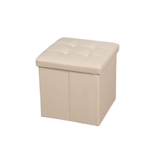 MOHUIED Foldable Storage Stool Household Storage Daily Necessities Square Shoe Changing Stool PU Leather Material Storage Boxes for Living Room,Bedroom(Beige)