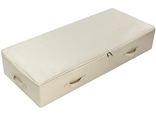 Amonsen 100X43X18cm, Ultra Large Underbed Storage Organizer Boxes with Lid, Rigid Folding Under Sofa Storage with 6 Handles, Beige