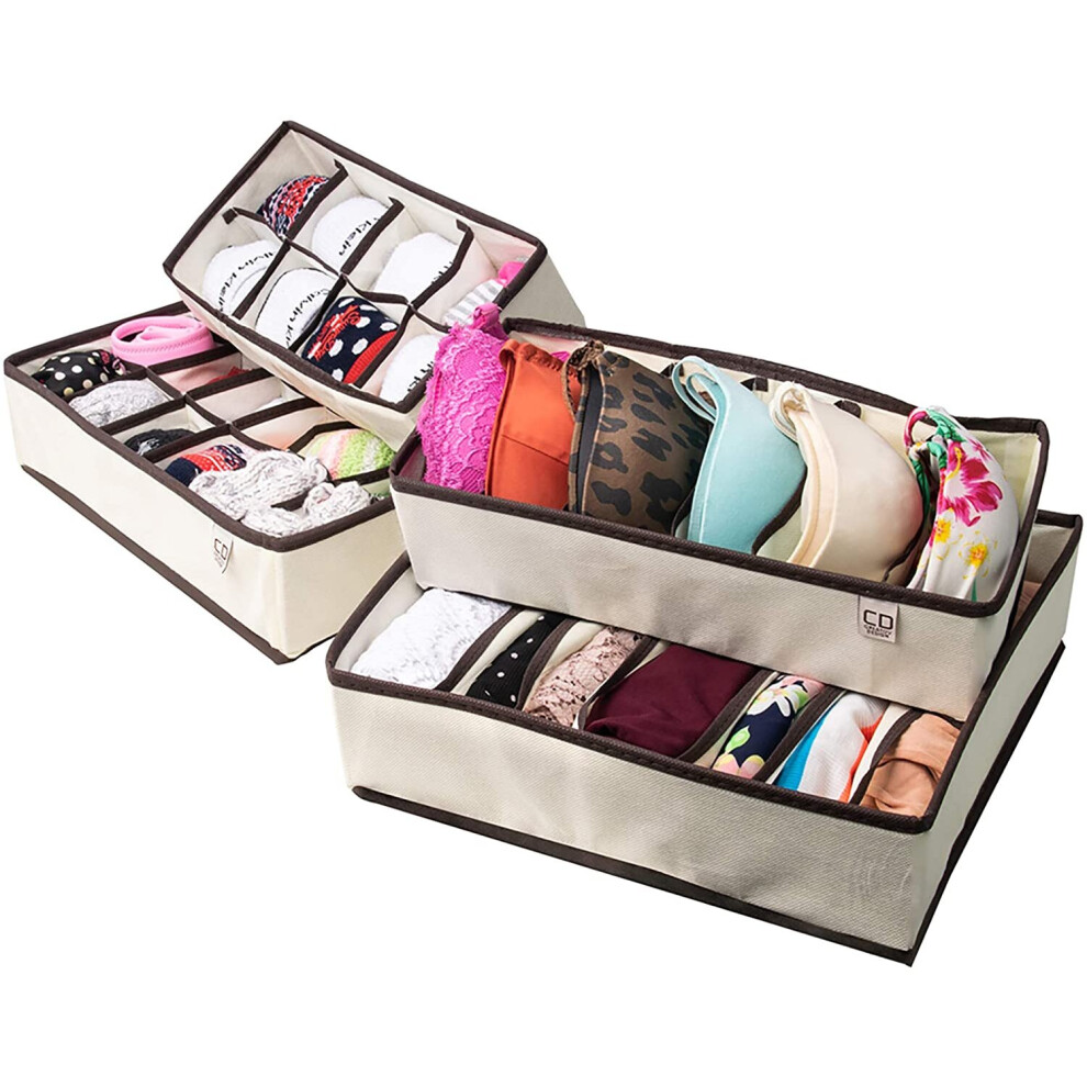 Underwear Sock Drawer Closet Organizer C Set of 4 Collapsible Beige Fabric Foldable Storage Boxes Draw Organizers Divider for Panties Bra Socks Tie B