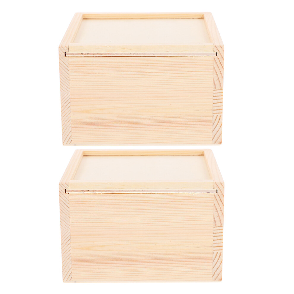 2Pcs Beige Wood Jewelry Storage Boxes Sliding Lid Craft Organizer