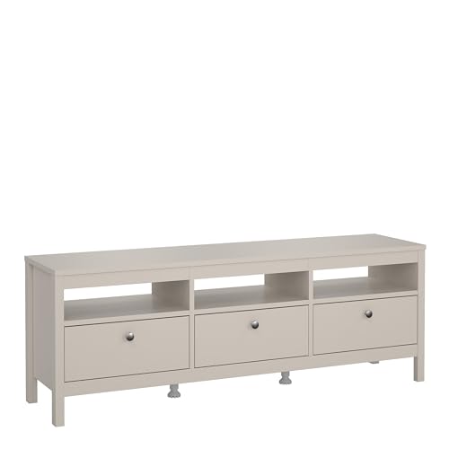 Contemporary TV Unit with Three Drawers and Open Compartments for Media Storage with Metal Handles and Choice of Finishes