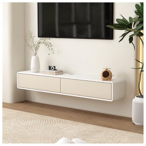 XRBCNMM Floating TV Unit Wall Mounted Cabinet White Gloss Media Stand Modern Minimalist Storage Unit with Cable Hole for Living Room (White Beige,120cm Drop-down door)