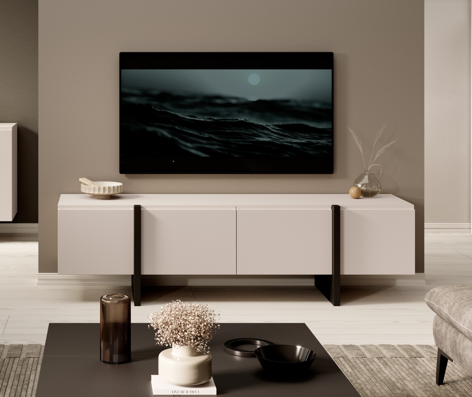 FWStyle 2 Door Sandstone Modern TV Unit Stand in Beige