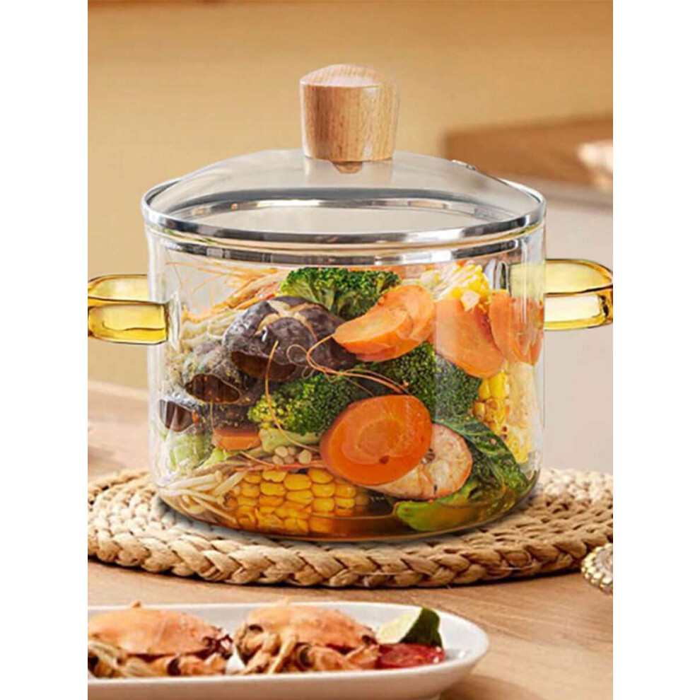 1.5L Clear Borosilicate Glass Saucepan with Lid, 50oz, Stovetop-Safe, Soup & Noodle Cooker â Compatible with Gas/Electric