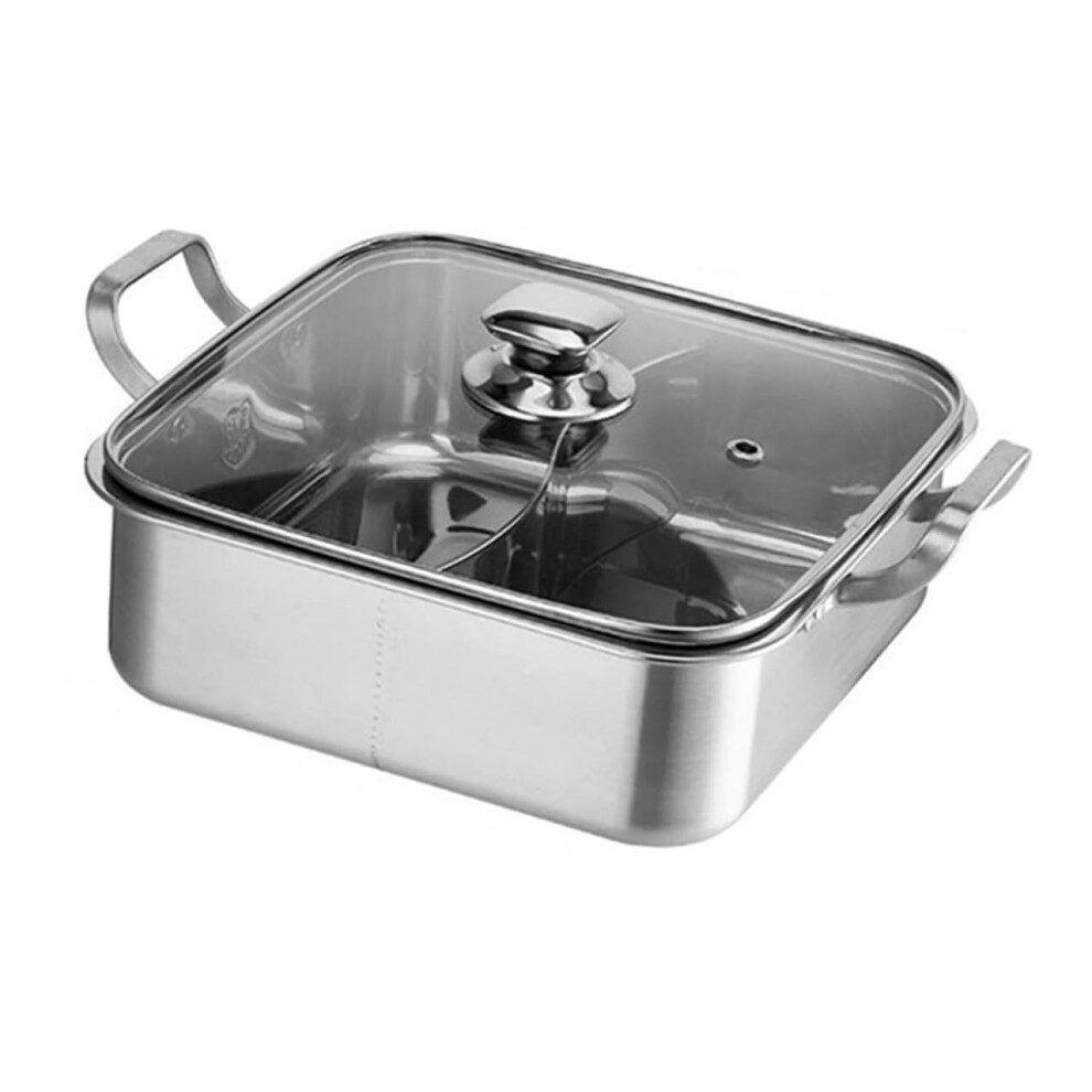 Hot Pot Cooker Dual Flavor Stainless Steel Divided Shabu Shabu Pot with Glass Lid for Induction Gas