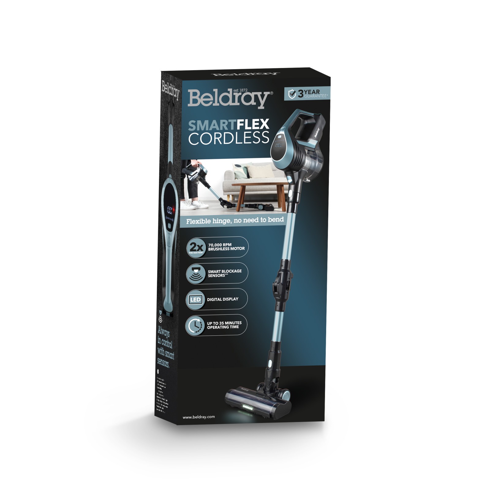 Beldray Smartflex Cordless Vacuum Cleaner ? Multi-Cyclonic 1L Stick Vac, Flexi-Hinge, LED Digital Display, Battery Level Indicator, Smart Blockage