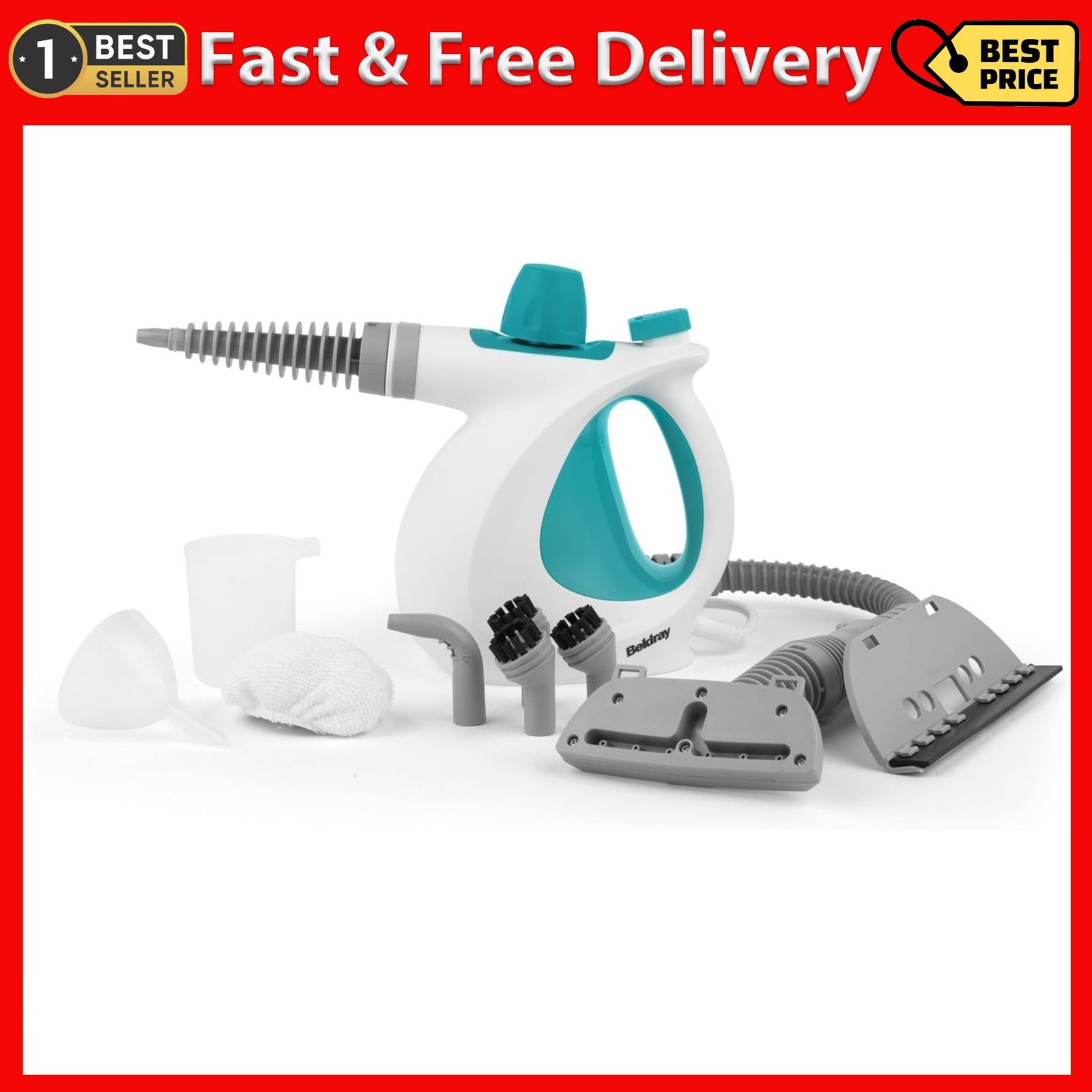 Beldray BEL0701TQN 10-in-1 Handheld Steam Cleaner - Clean, Sanitise & Refresh Surfaces, Tiles, Mirrors Windows, Chemical Free Cleaning, Includes