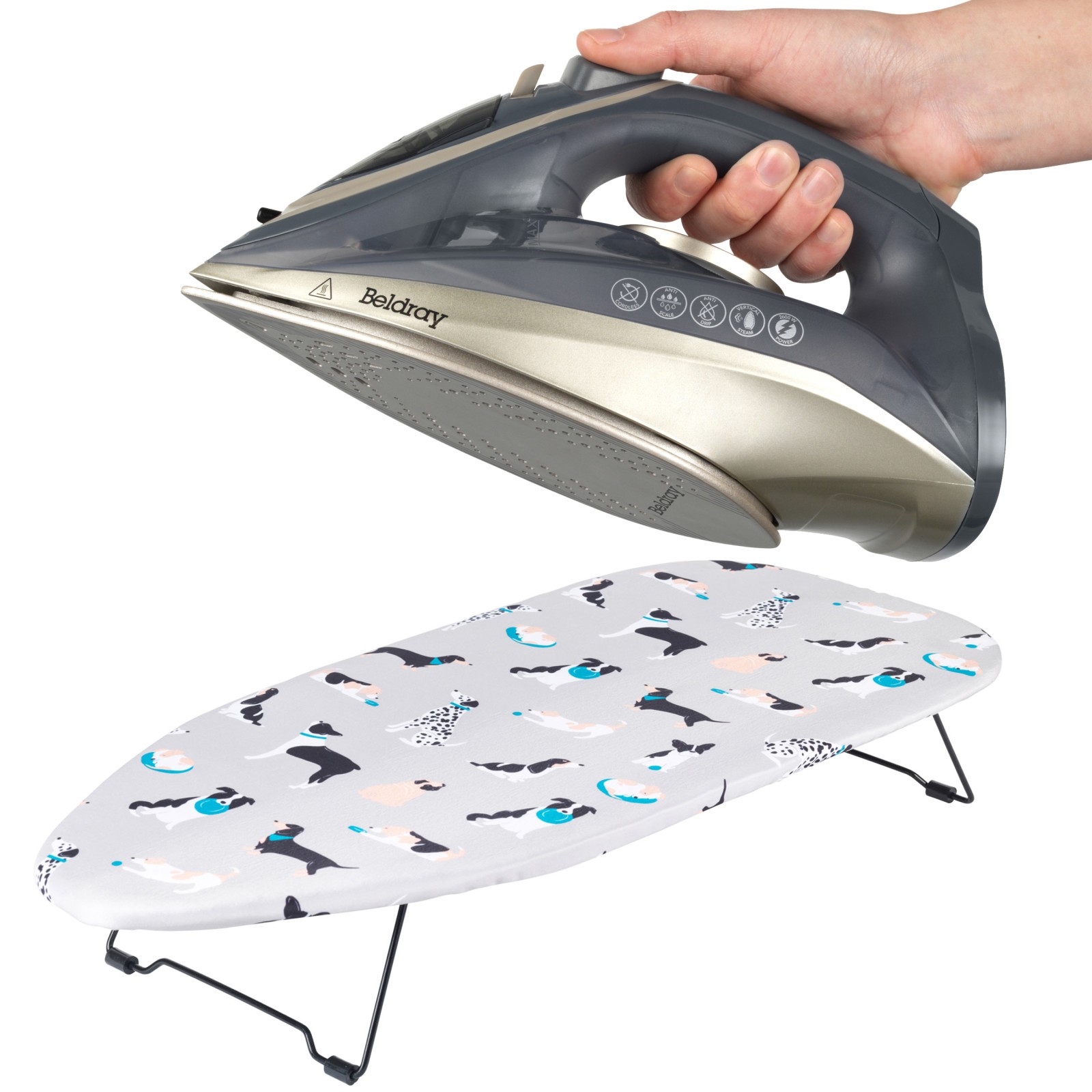 Beldray Steam Iron & Tabletop Ironing Board 2-in-1 Cordless Ceramic Dog Print