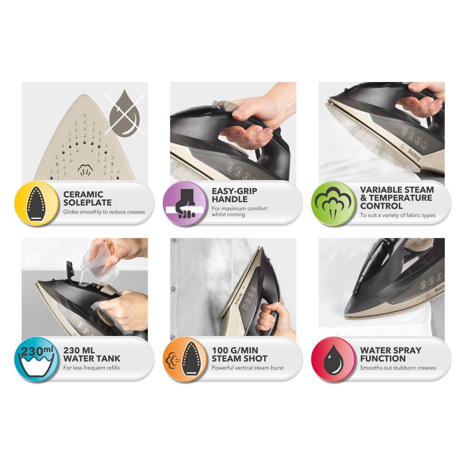 BELDRAY BEL01982 Steam Iron - Titanium, Cream,Silver/Grey