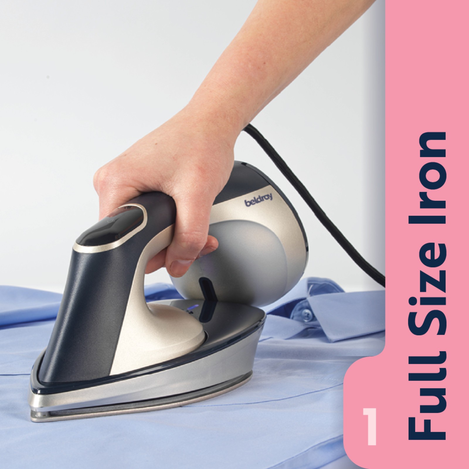 Beldray COMBO-9211 Steam Iron & Ironing Board Set ? Powerlite, Ceramic Soleplate, 200g/min Shot, 320ml, Variable Temperature, Compact