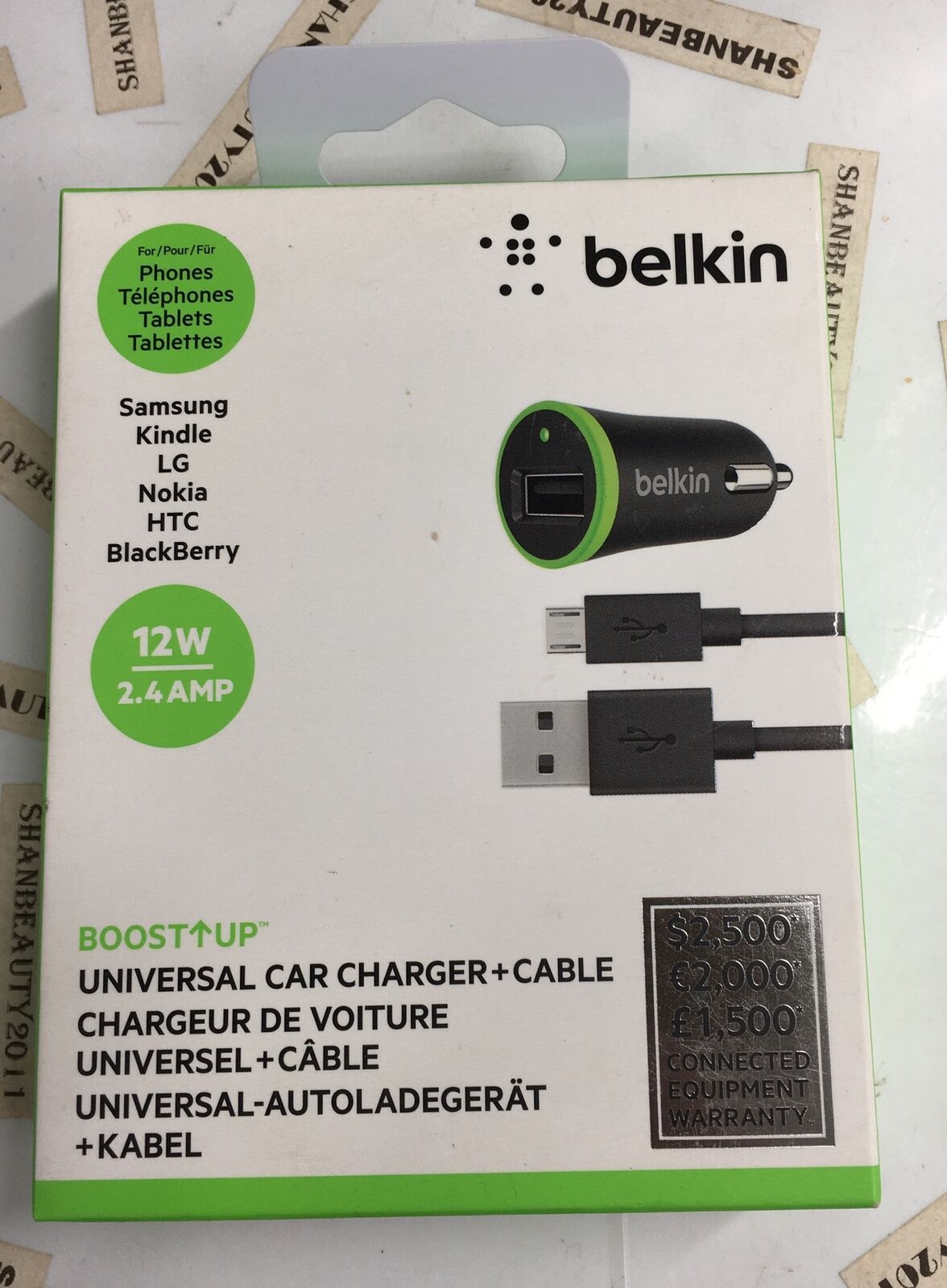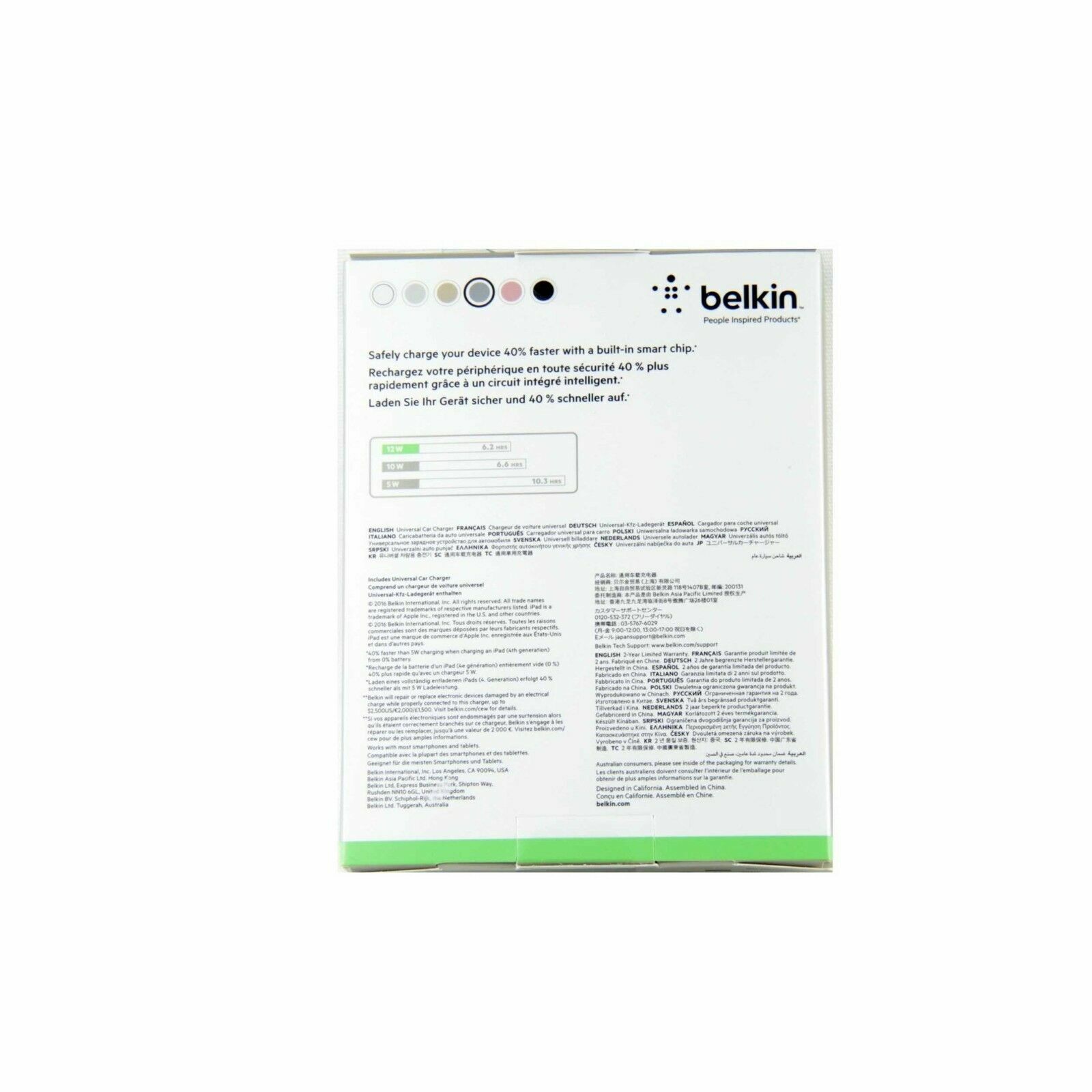Belkin Universal Car Charger 12W 2.4AMP + Cable Micro USB Free Postage
