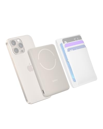 Belkin 5000mAh Magnetic Wireless Power Bank, Portable Charger Compatible with MagSafe, Battery Pack with 7.5W Output, 10W Input and Kickstand, Compatible with iPhone 16, 15, 14, 13, 12 Series - White