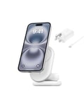 Belkin BoostCharge MagSafe Charger, Magnetic Foldable Wireless Charging Stand 15W, MagSafe-Compatible Portable Fast Charger for Qi2, iPhone 17, Air, Pixelsnap, Standy Mode Ready, PSU Included - White