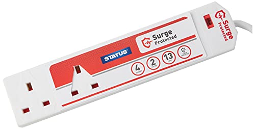 STATUS Multi Plug Extension | 4 Socket Extension Cable | 2m Extension Lead | 13A Surge Protected with Neon Indicator | S4W2MSPS9