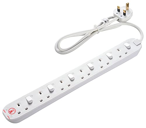 Masterplug Six Socket Power Surge Protected Extension Lead with Individual Switches, 2 Metres, White