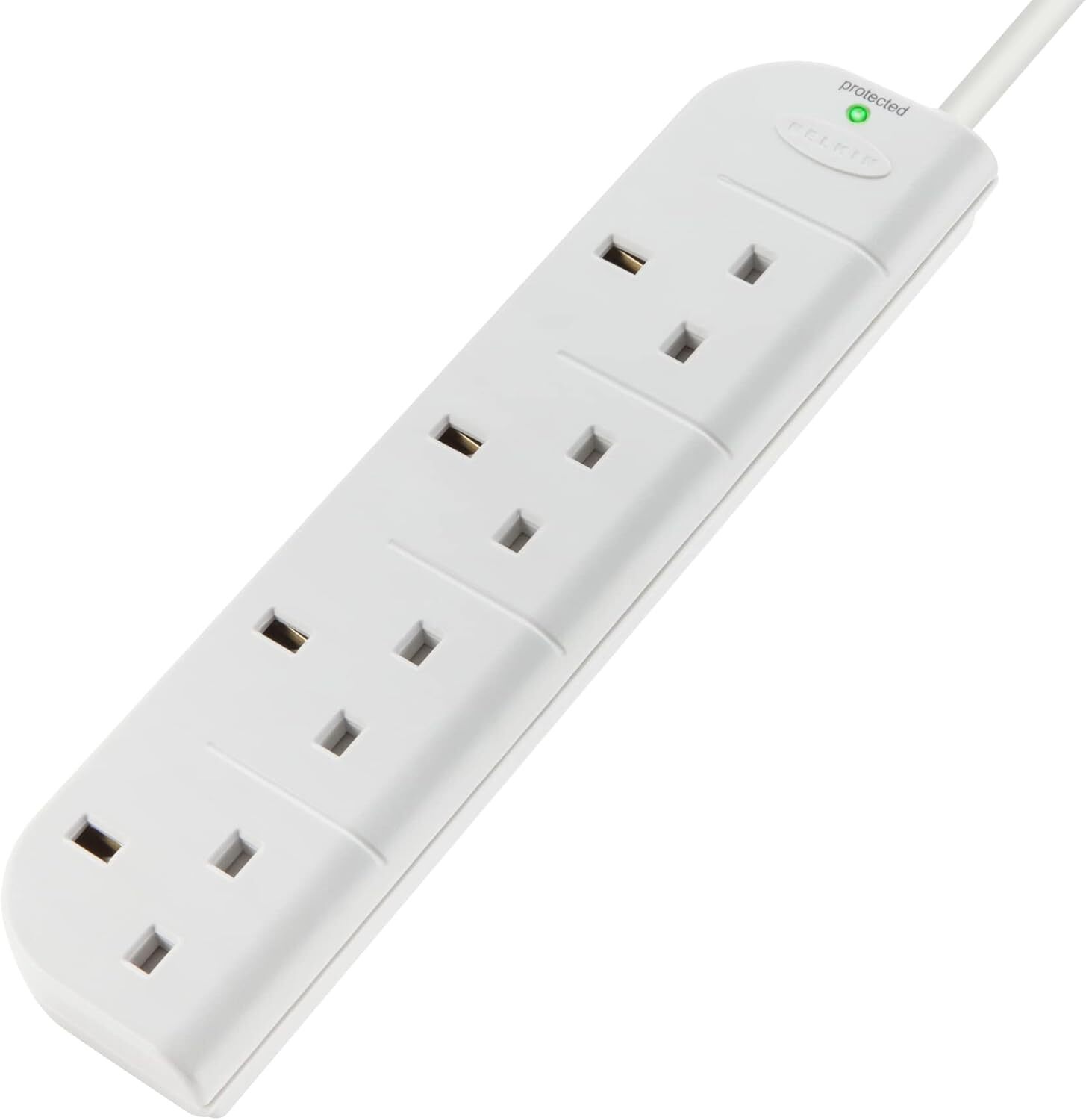 Belkin 4 Way/4 Plug 2 M Surge Protection Extension Lead Strip, White