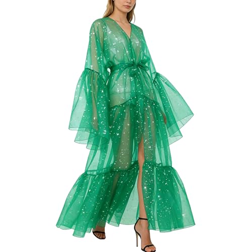 BPURB Women's Bell Sleeve Robe Drag Queen Organza Coat Cosplay Costume Sexy Cover Up (Large, Green)