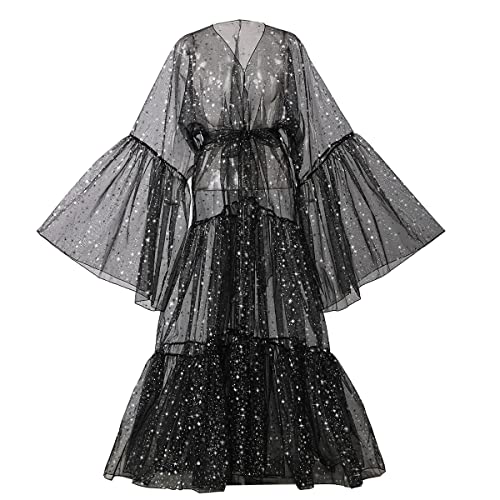 BPURB Women's Bell Sleeve Robe Drag Queen Organza Coat Cosplay Costume Sexy Cover Up (Large, Black)