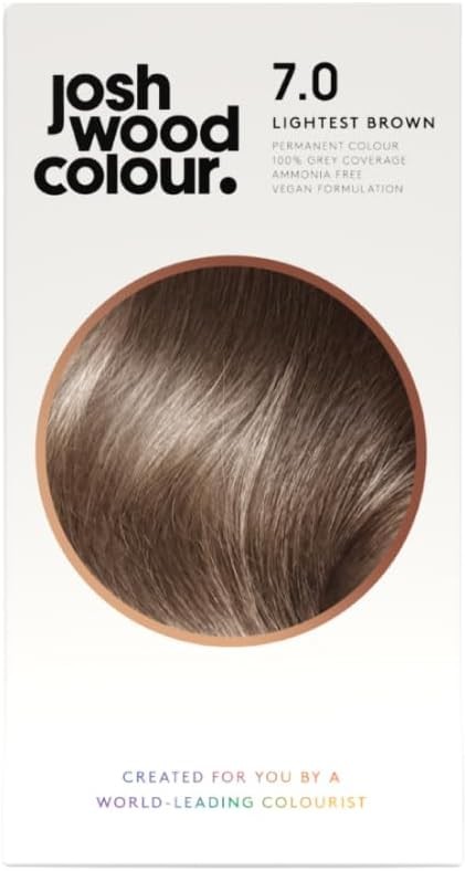 Josh Wood Colour - Ammonia-Free Hair Dye - Permanent Hair Colour with 100% Grey Coverage - Vegan Friendly, Natural-Looking Results, Shiny & Hydrated Hair | 7.0 (Lightest Brown)